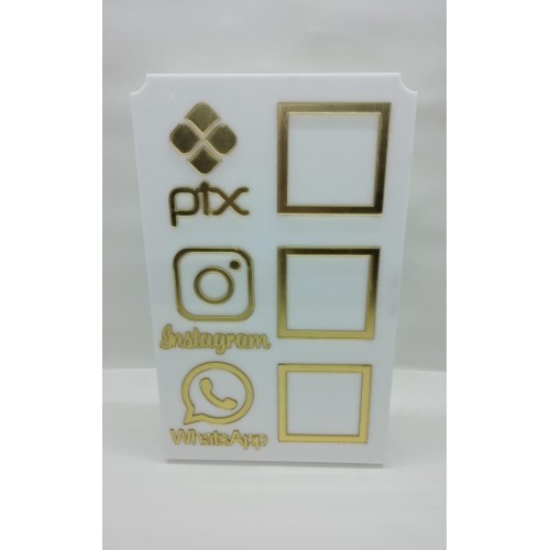 Placa acrílica para Whatsapp,PIX,Instagram Branca e Dourado